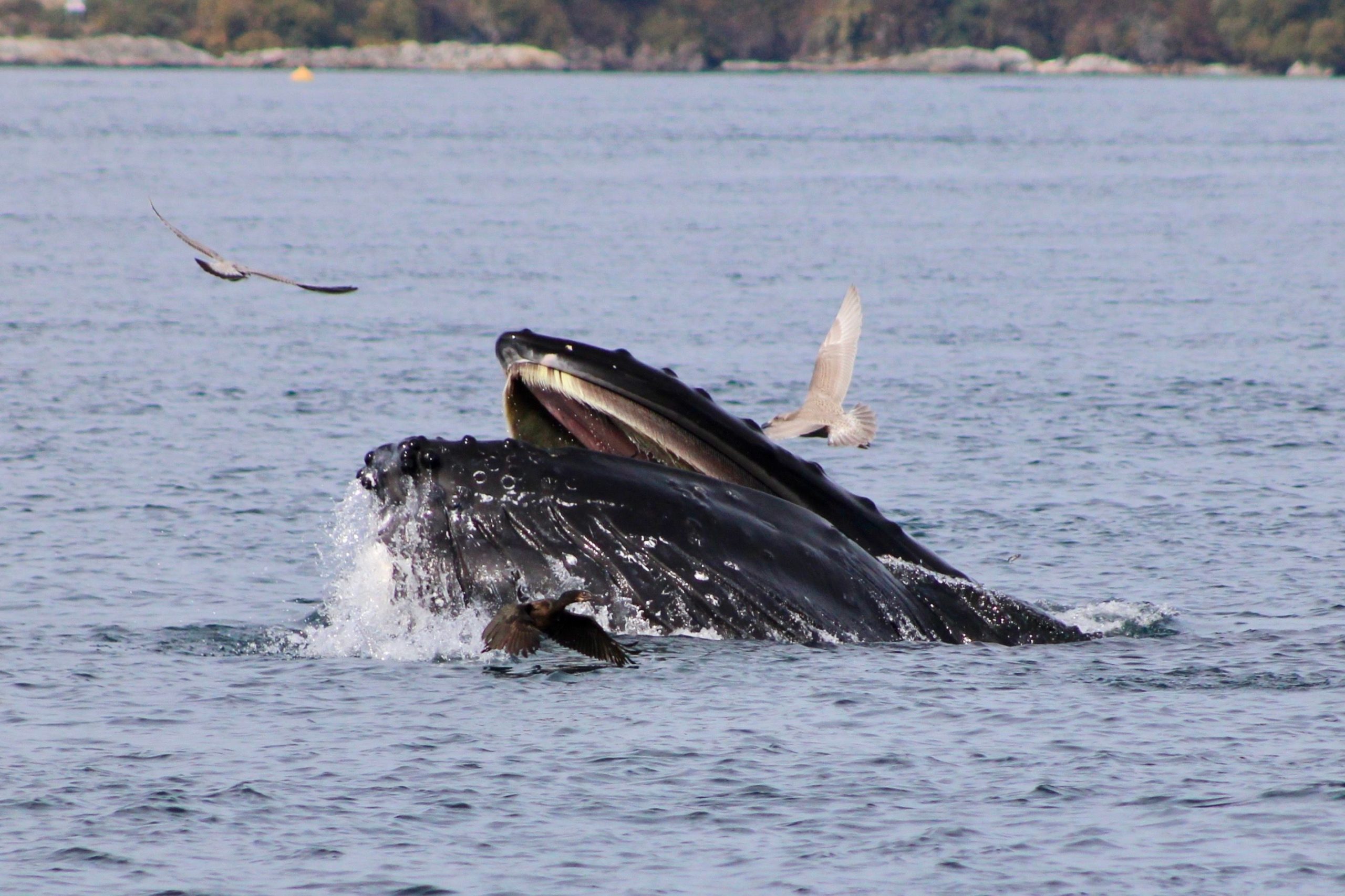 They are very curious and active whales, often exhibiting behaviours like spyhopping, breaching, pectoral slapping, tail lobbing, and unique feeding patterns such as lunge and bubble-net feeding. Bubble-net feeding is a hunting strategy that involves the whales blowing a curtain of bubbles to disorient and ensnare schools of fish.